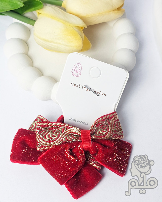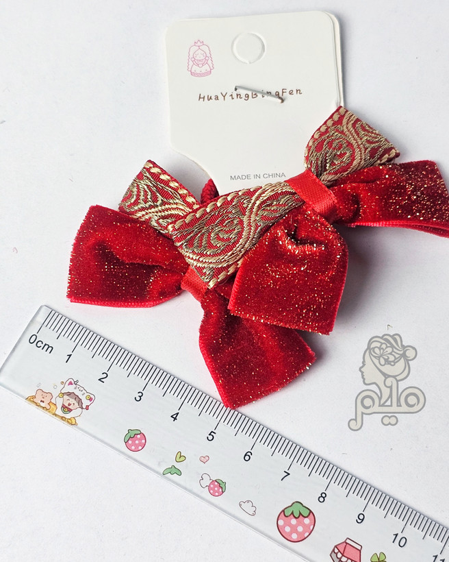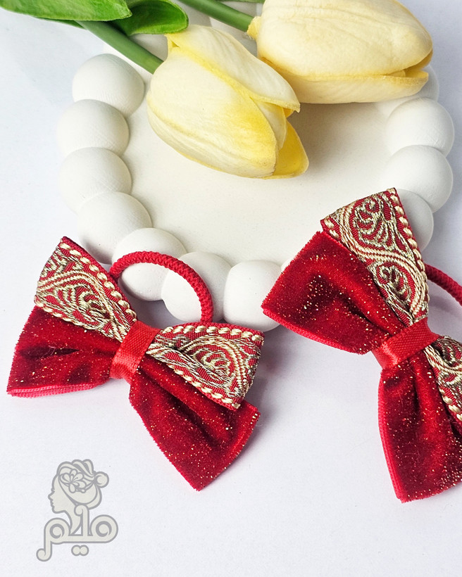 کش مو پاپیون مخمل زرکدار قرمز