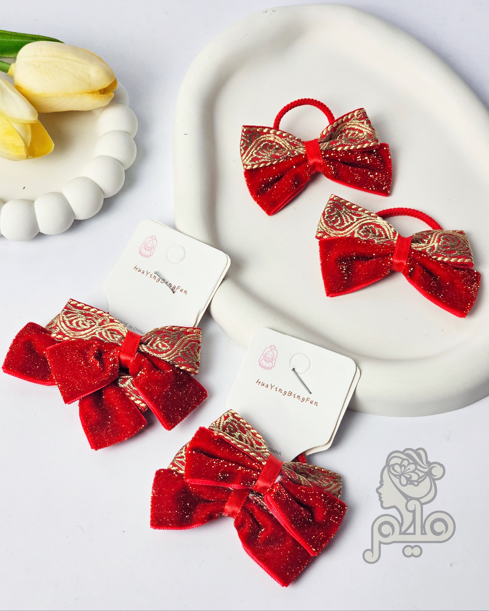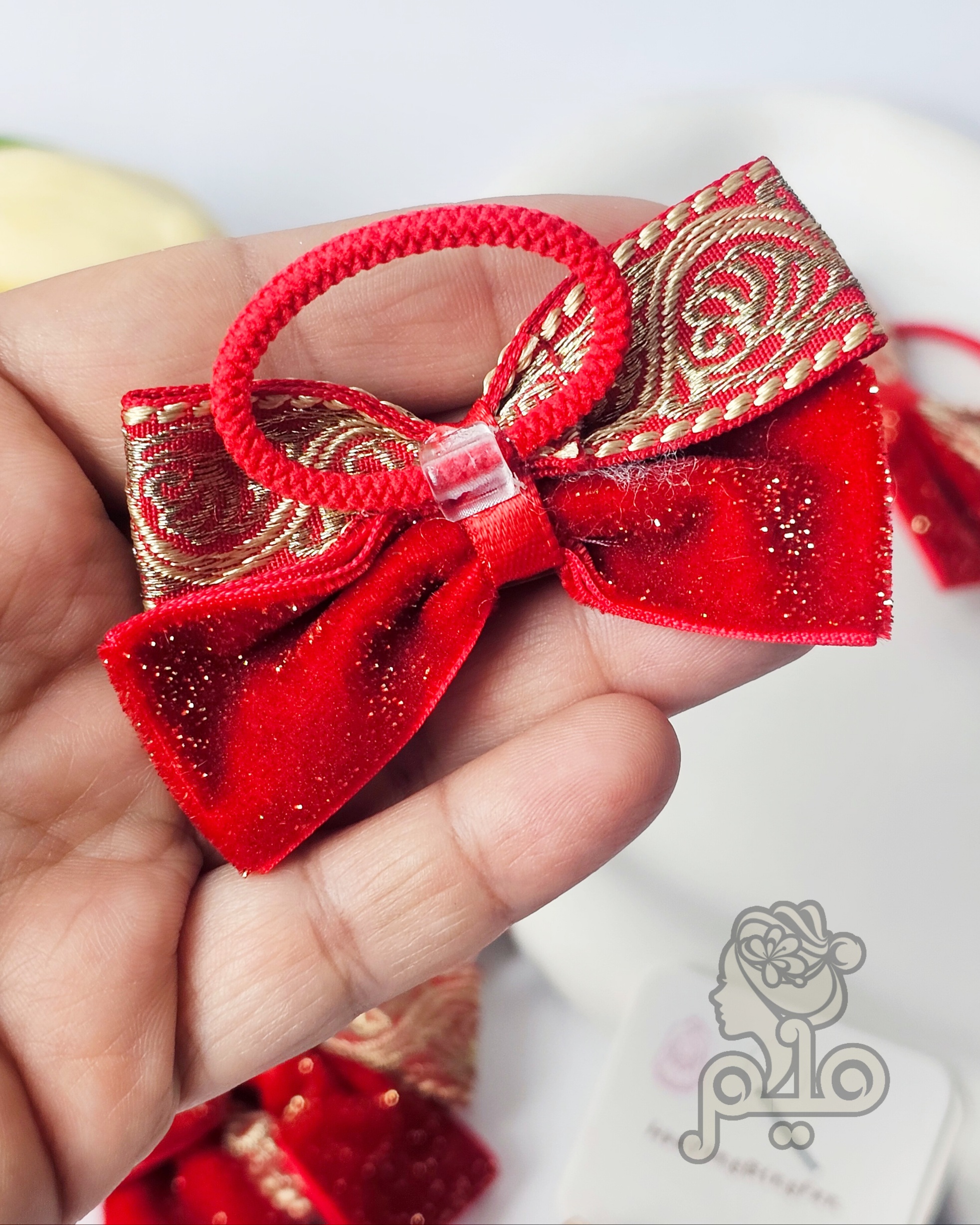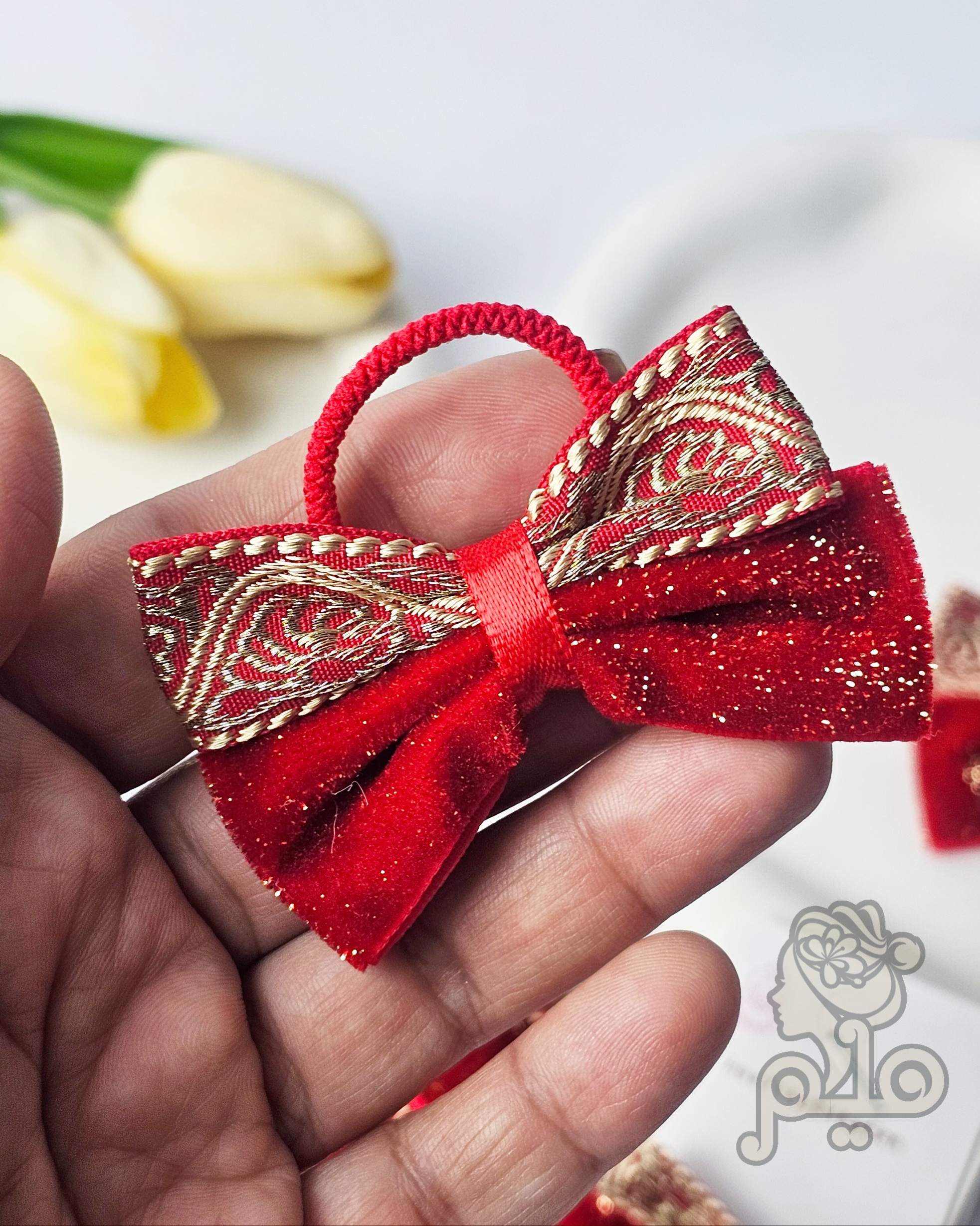 کش مو پاپیون مخمل زرکدار قرمز