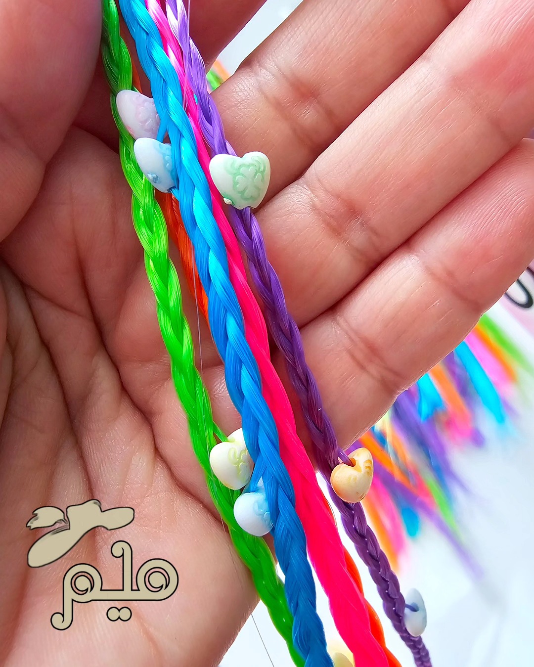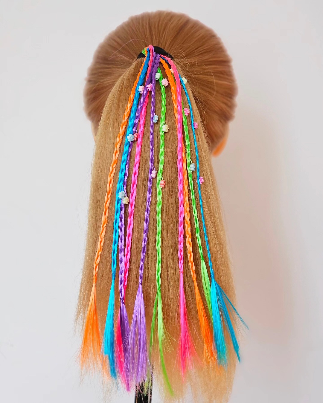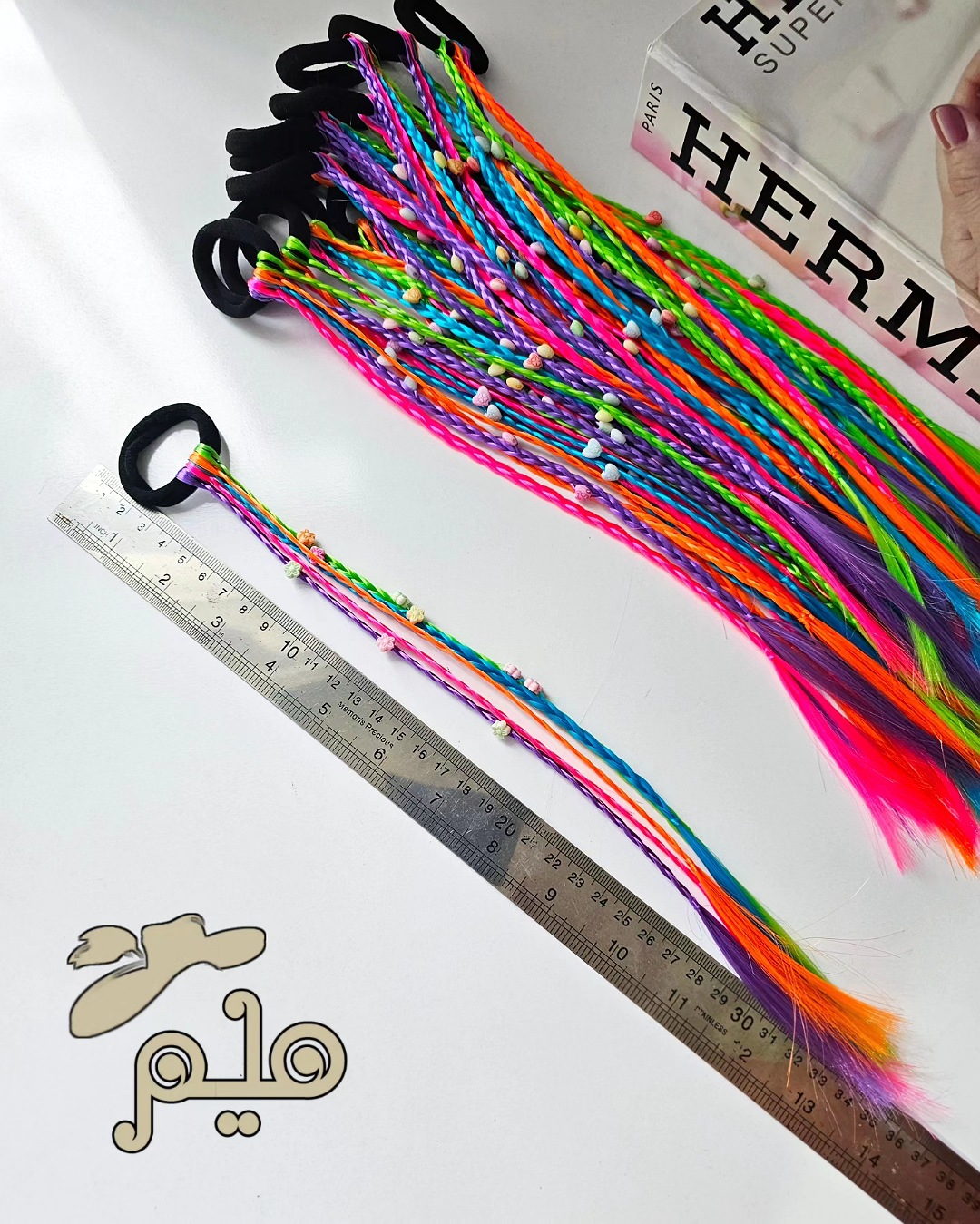 ریسه مو رنگی مهره دار کش مو مشکی، ریسه ها در ۵ رنگ دارای دو مدل مهره، گل و ستاره سایز تقریبی ریسه ۳۰ سانت بدون محدودیت سنی برای حجم موی کم ۱ کش ۵ ریسه ای و برای موهای پرپشت ۲ کش استفاده کنید
